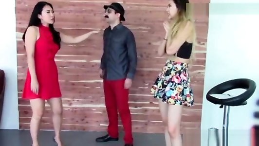 Hot Asian Secretaries In Pantyhose Have Threesome In Lu
