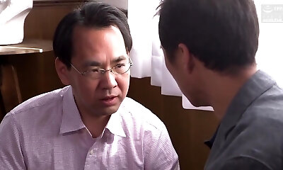Asian cuckold provides his wife to rich clients